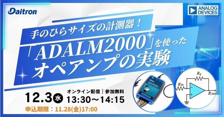 ・Webinar : Analog Devicesの手のひらサイズ計測器セット:「ADALM2000」を使ってオペアンプの実験をしてみよう