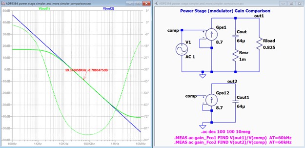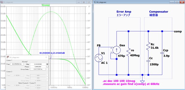 この様にFcoの60kHzに於いての差はほぼ見えません。 まとめるとパワーステージのゲイン Av(ps) は Gps * (Cout のインピーダンス) つまり