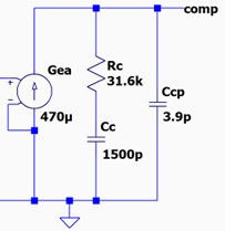 | ro | EAの出力抵抗。デバイス内部固定値で位相補償にはあまり関係しません。Ccと共に低周波ポールを形成します。抵抗値が高い方がDCゲインが高くなり、出力電圧精度は高まります。 | Ω |