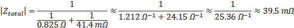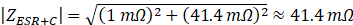 これと、Resr (1mΩ) の直列合成インピーダンスはベクトルの2乗和で計算できます。1mΩは41.1mΩと比べるとほぼ無視できそうに思われますが、一応計算してみますと、