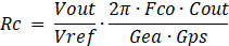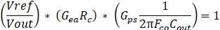 その答えはこのエラーアンプと補償器のステージのゲインを幾らにしたいのかという事に基づきます。先に見たパワーステージと抵抗分割部とこのエラーアンプと補償器のステージの合計のゲインが目標クロスオーバー周波数で1(0dB) になる様にこのステージでのゲインをRcで決める事になります。このゲインはエラーアンプのトランスコンダクタンス(Gea) * Rc で簡略化されます。