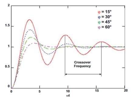 過渡応答を与えてその応答波形からおおざっぱな位相余裕の傾向を知る事が出来ます。もしリンギングやオーバー・アンダーシュートが見られればその繰り返し周波数がクロスオーバー周波数です。オーバー・アンダーシュートが見られない場合は、位相余裕は約60度以上あり安定なシステムと考えられますが、アプリケーションによっては遅すぎる危険性があるシステムである場合も有りますので、実機において起動時や出力短絡からの解放後に過度のオーバーシュートが見られないか等の確認が必要かと思われます。
